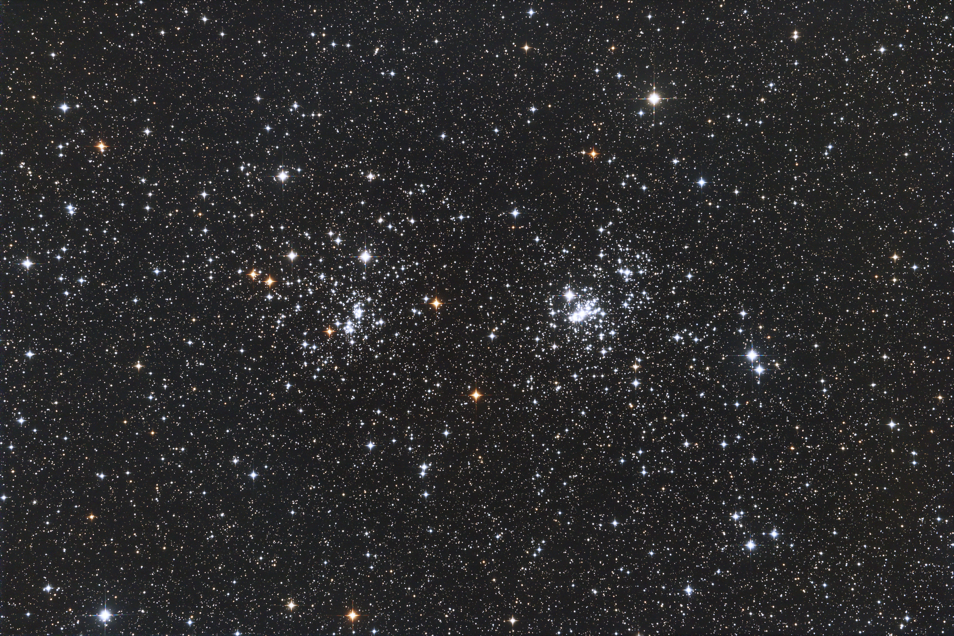 | | 2025-11-01 20:29:46 124min | ペルセウス座の二重星団 h-χ (NGC 869(右)とNGC 884(左)) MT200 + Baader MPCC III(1200mm F6) ZWO ASI6200MC Pro Gain=250