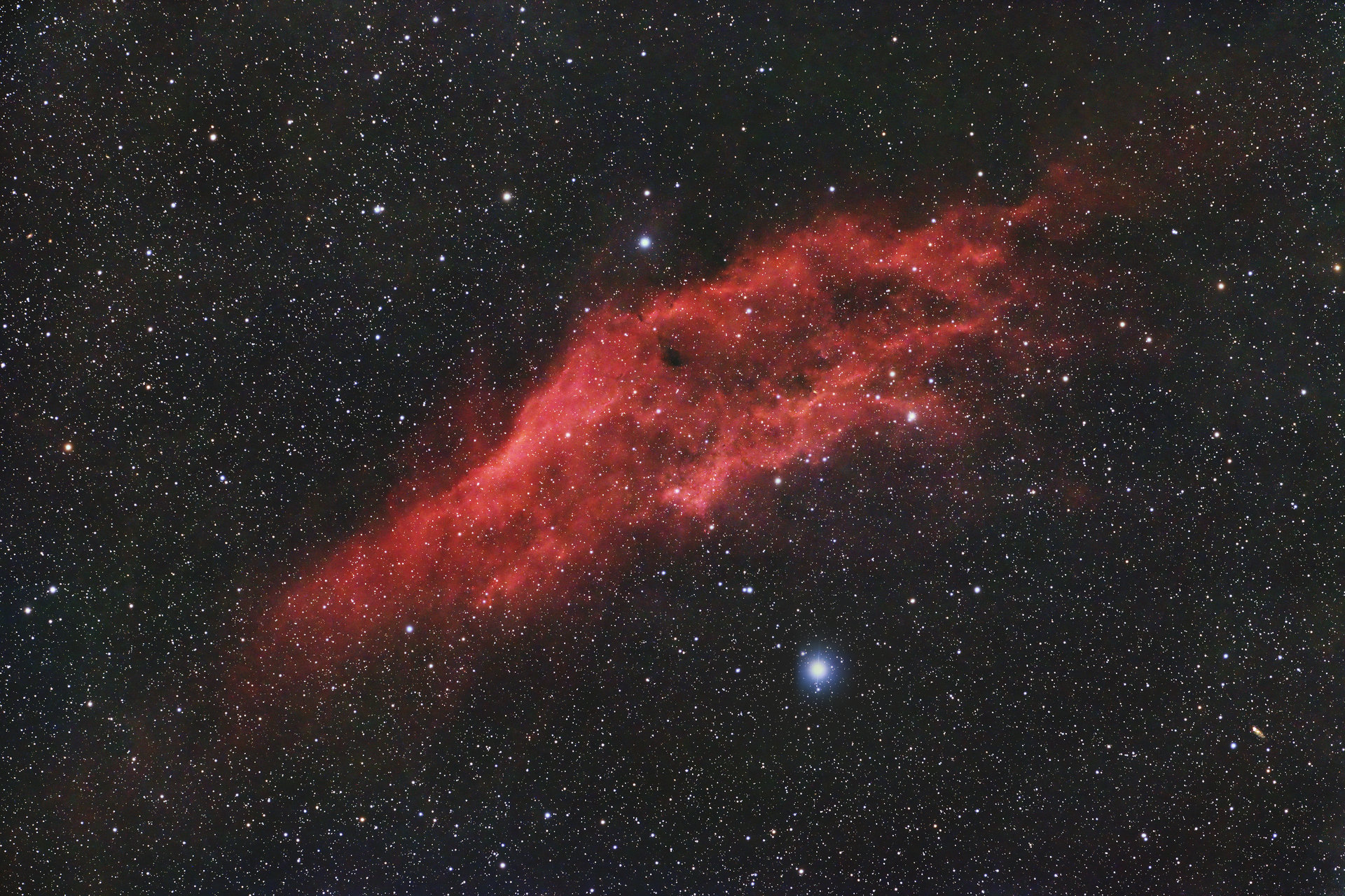 | | 2018-12-08 20:22:51 60min | カリフォルニア星雲 BORG77ED II + x1.08フラットナー(550mm F7.1)+Quad BP Filter CANON EOS 6D Mark II(IR) ISO=1600