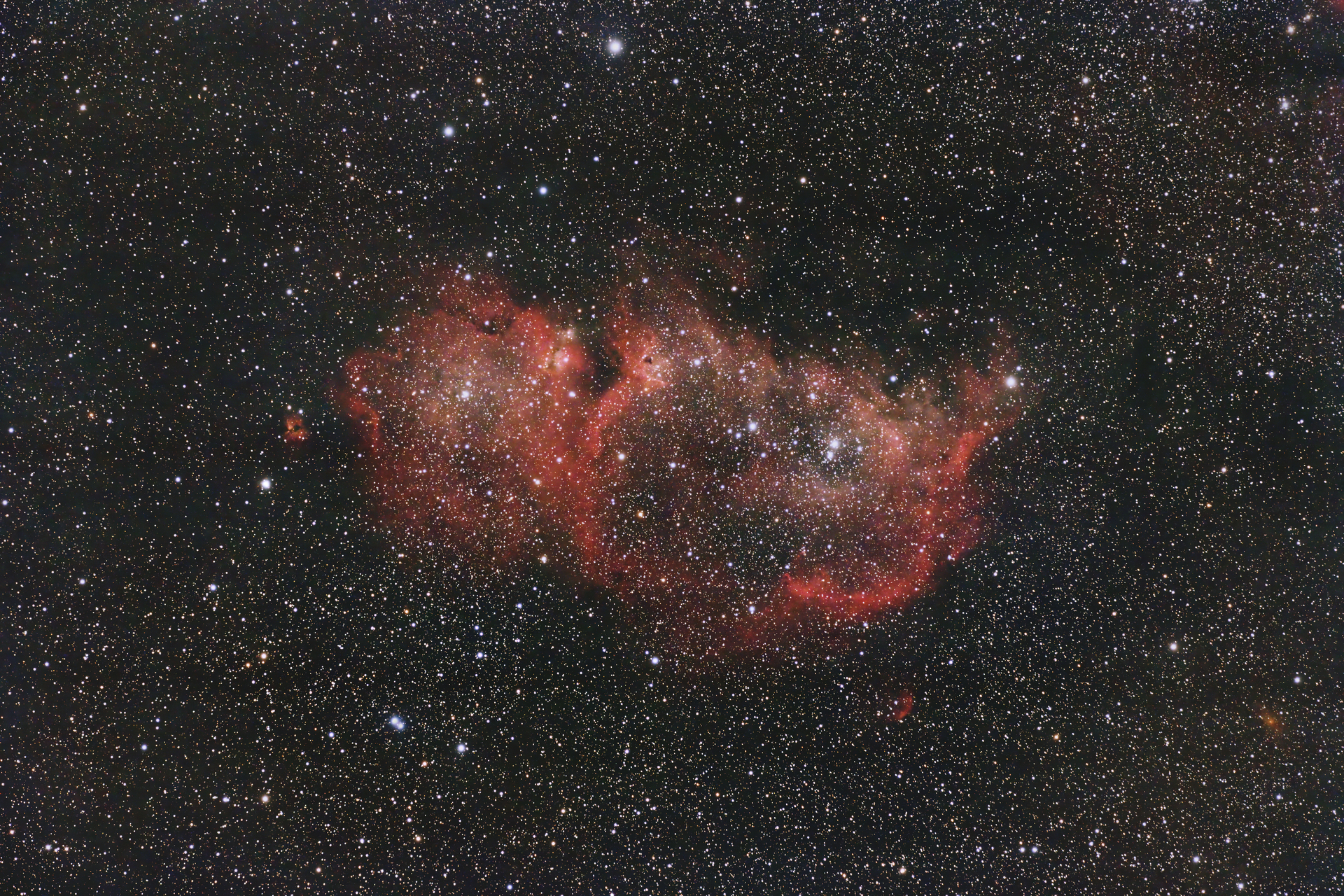 | | 2025-09-07 21:28:14 134min | カシオペヤ座の散光星雲 NGC281 パックマン星雲 MT200 + Baader MPCC III(1200mm F6)+Optolong UV/IR Cut ZWO ASI183MC Pro Gain=150